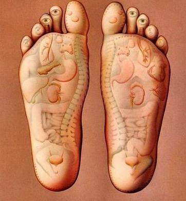 stimulace reflexních bodů chodidel a tím i vnitřních orgánů a podpory